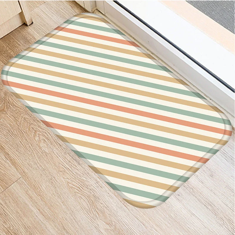Противоскользящий замшевый ковер в стиле ретро с полосками, дверной...