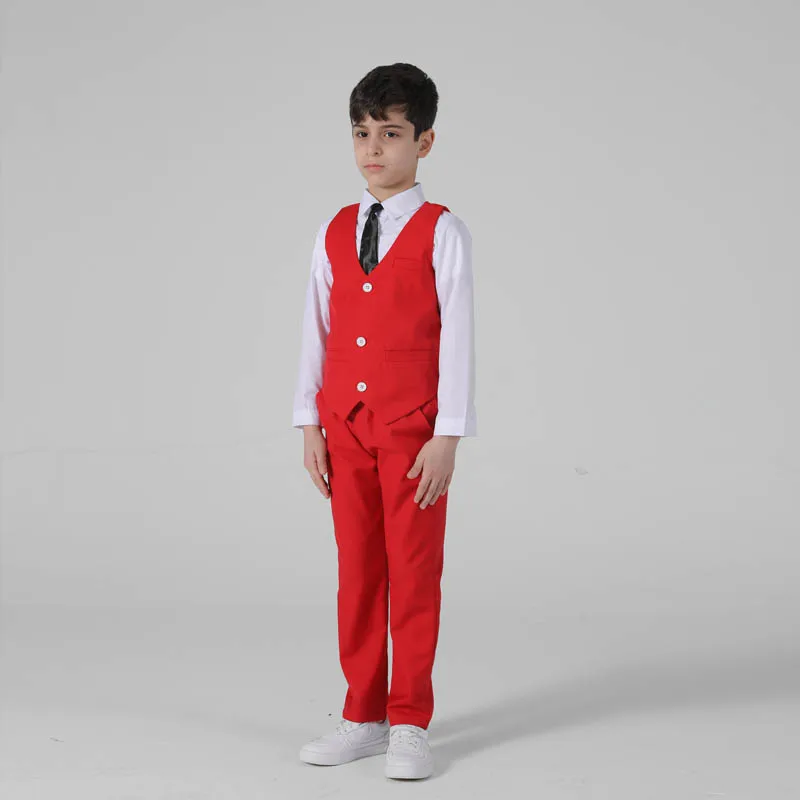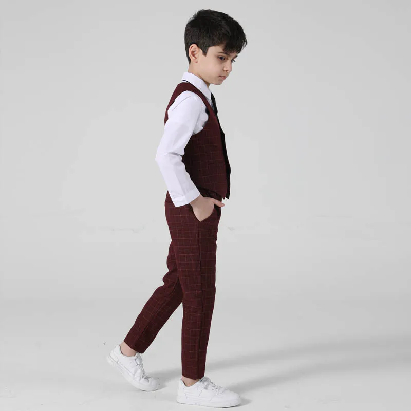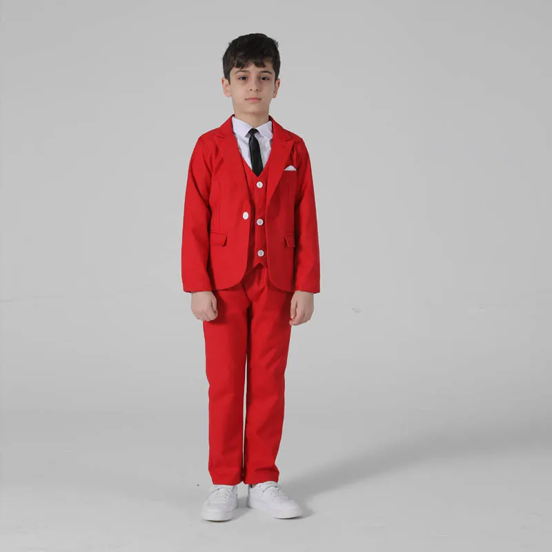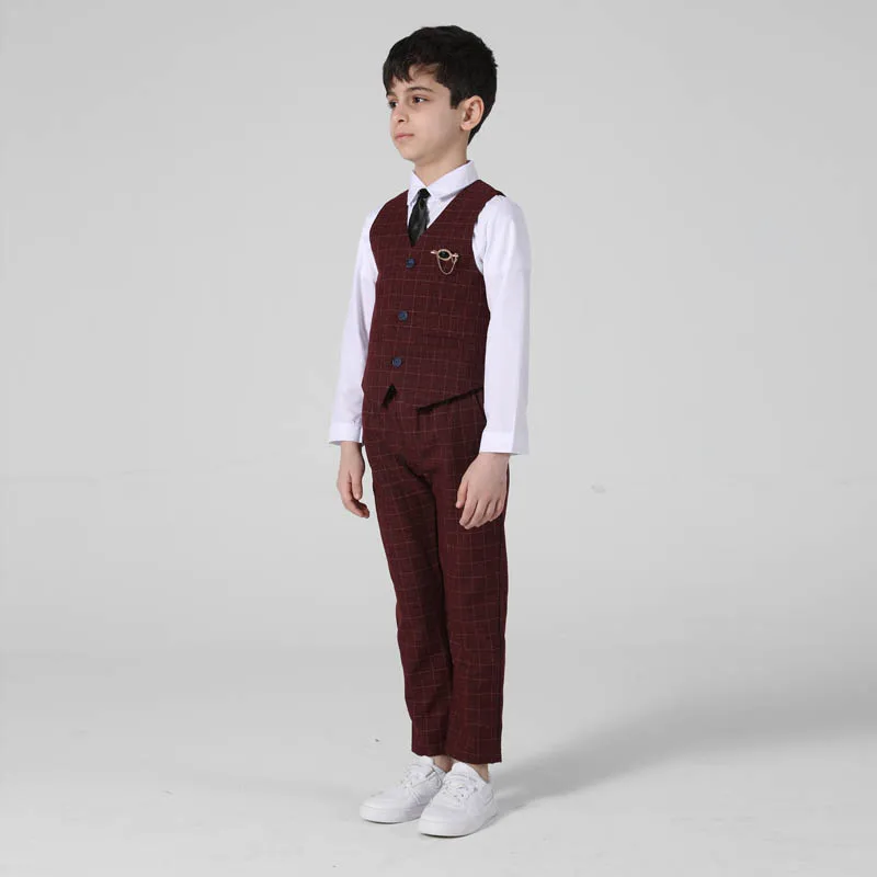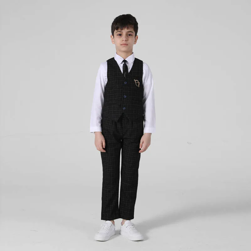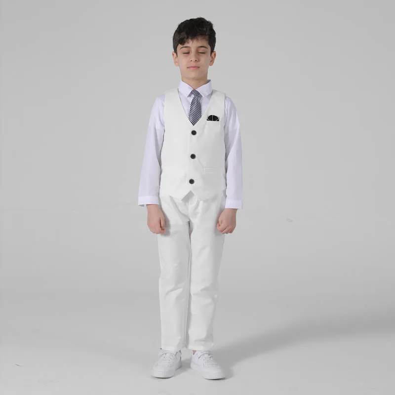 Весенне-осенний официальный костюм для мальчиков, Детский костюм для проведения вечеринки, свадьбы, костюм для маленьких детей, Блейзер, жилет, брюки, комплекты одежды
