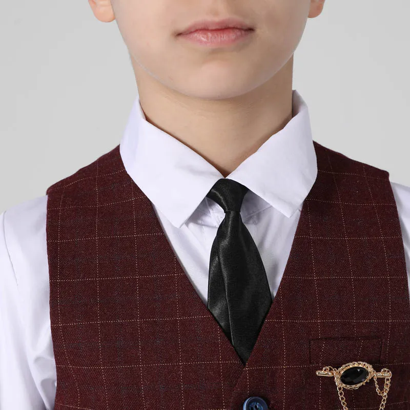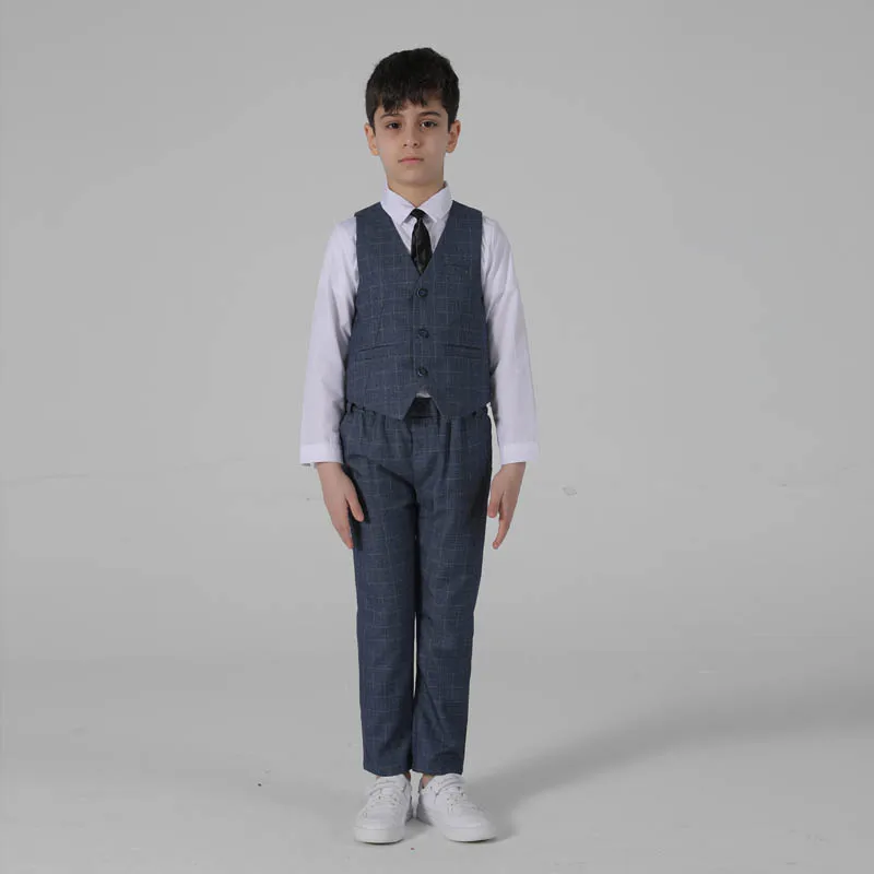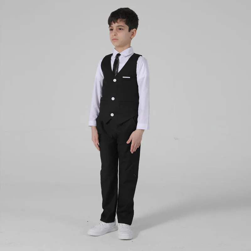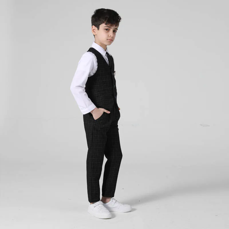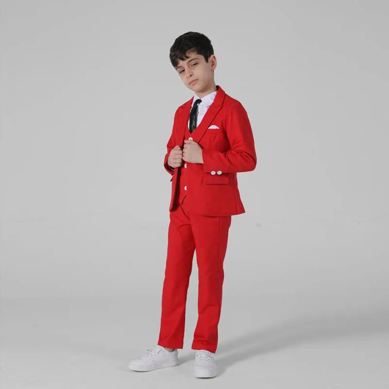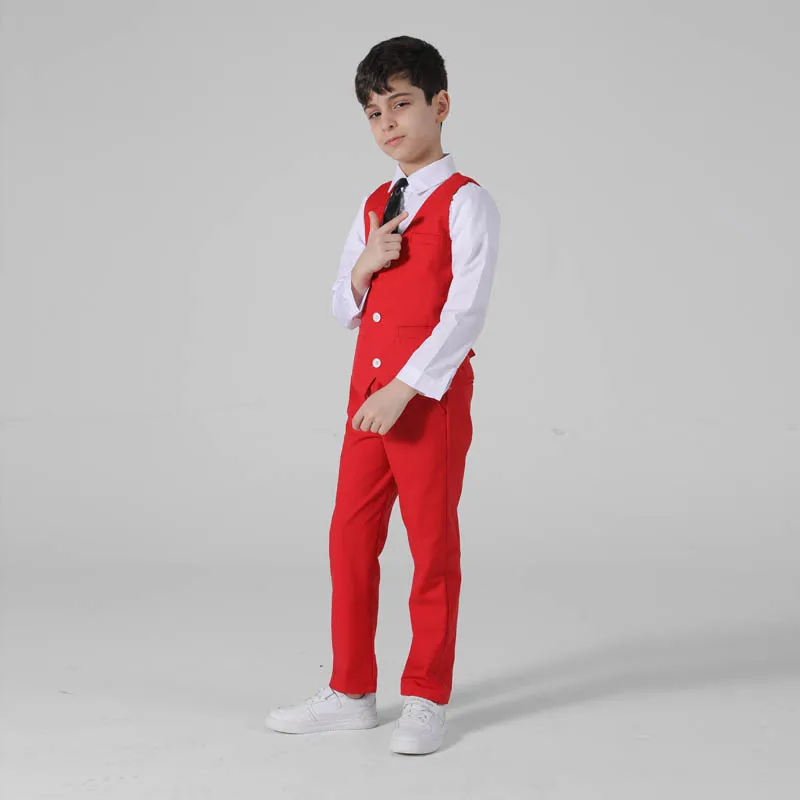 Весенне-осенний официальный костюм для мальчиков, Детский костюм для проведения вечеринки, свадьбы, костюм для маленьких детей, Блейзер, жилет, брюки, комплекты одежды