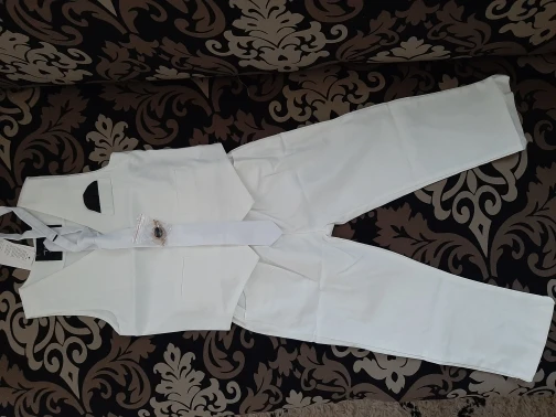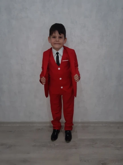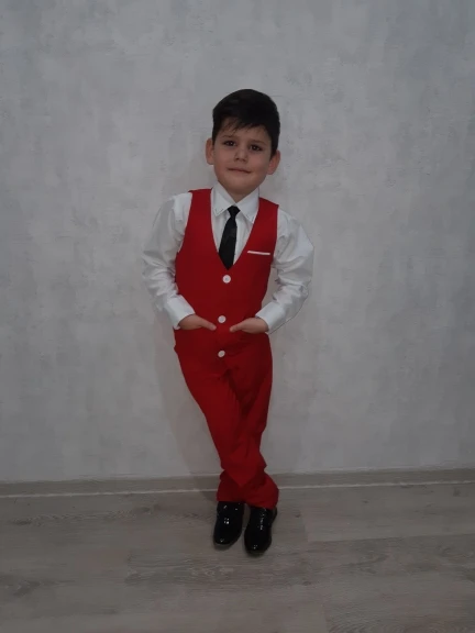 Костюм без рубашки, галстука и пиджака, имейте в виду. На рост 110 см взяли размер 4т. И попали в точку. Костюм яркий, ткань плотная, выглядит, как на картинке. Но за то, что не указали понятно, что рубашка и прочее в костюм не входит, минусую звезды. В подарок положили классную брошь