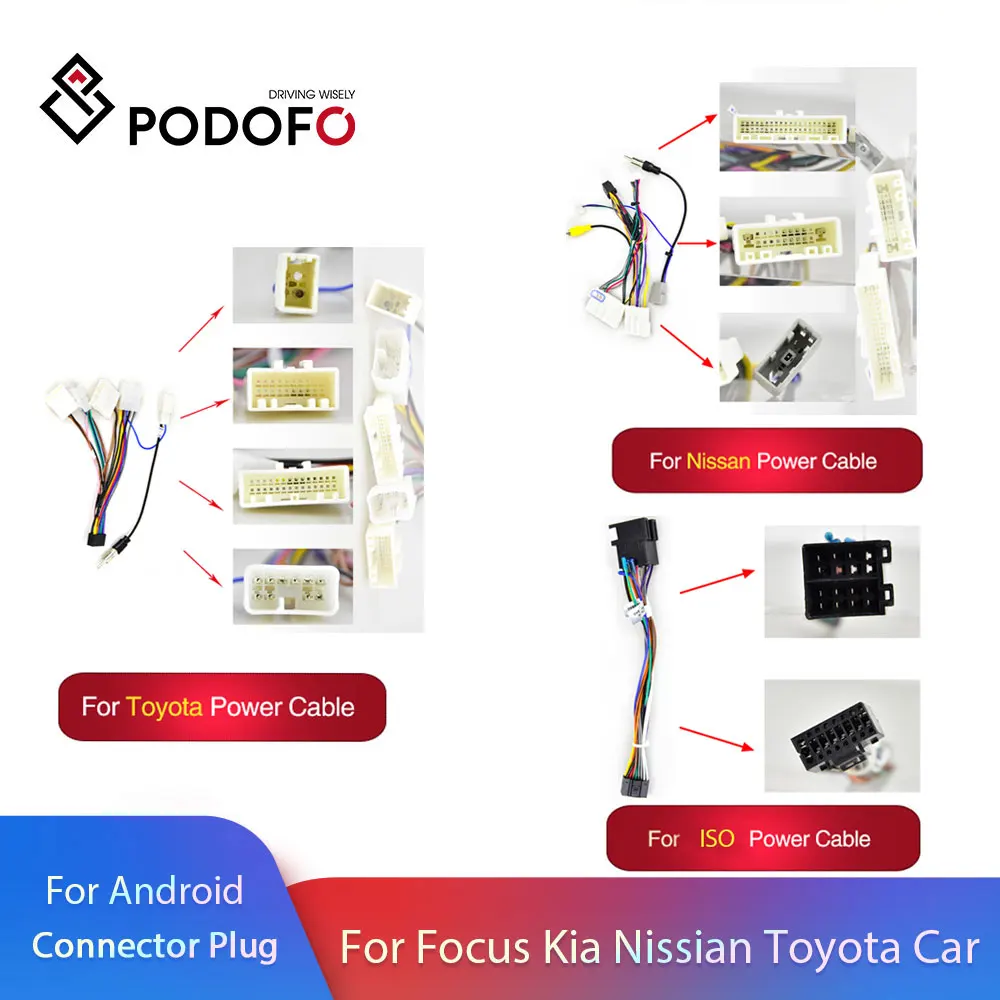 Автомобильные аксессуары Podofo 2 din для Android, автомобильный адаптер для жгута проводов, разъем, универсальный кабель для VW Nissian Toyota