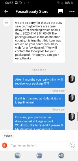 Товар так и не был получен из-за проблем на лиге. Продавец позволяет мне ждать несколько дней и месяцев с тем же ответом снова и снова. (См. Скриншоты в чате) никогда не повторяет мой заказ. Защита покупателя сейчас истекла. Моя дочь очень разочарована в вас. Большое спасибо и Веселитесь с моим 6,88 евро!