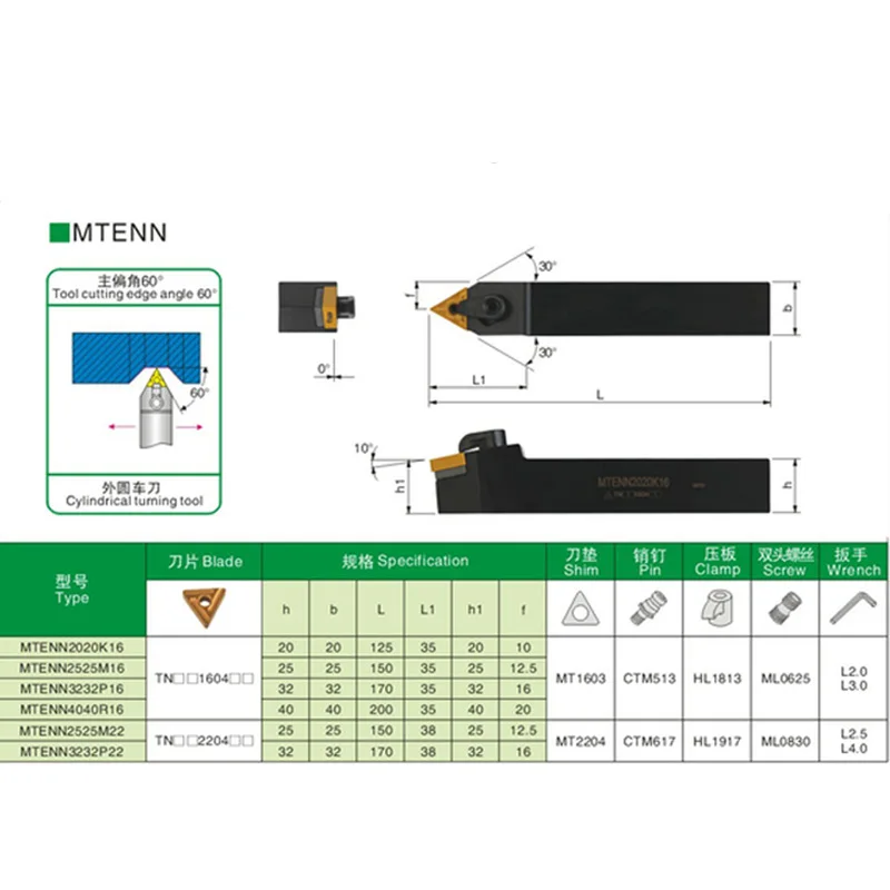 1 шт. MTENN2020K16 внешний токарный инструмент, столб 60 градусов, металлический токарный режущий инструмент, токарный станок с ЧПУ, токарный инструмент, токарный инструмент, столб