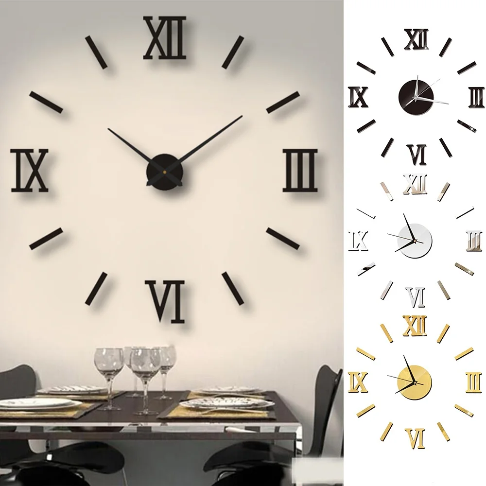 Настенные акриловые 3d-часы, кварцевые украшения сделай сам в стиле интерьера, римские цифры, зеркальные наклейки на стену, домашний декор для гостиной