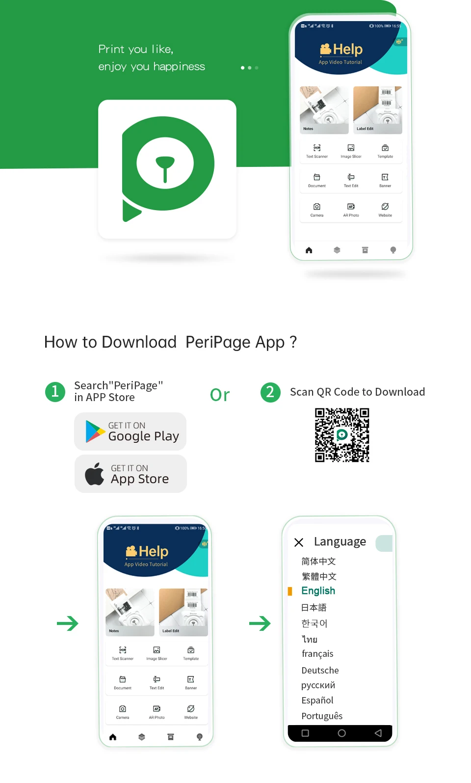 Портативный термопринтер PeriPage, Bluetooth, 203 точекдюйм, белая ...