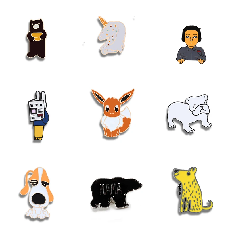Эмалированная брошь в виде мыши, лошади, медведя, собаки