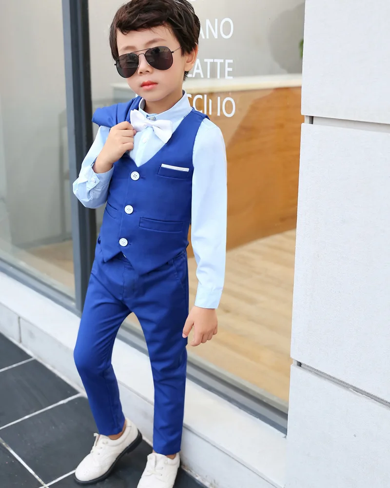 3 шт., детский Свадебный костюм для мальчиков, Блейзер, куртка + жи...