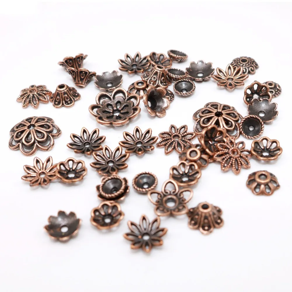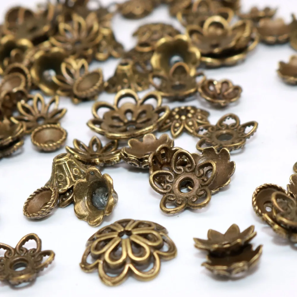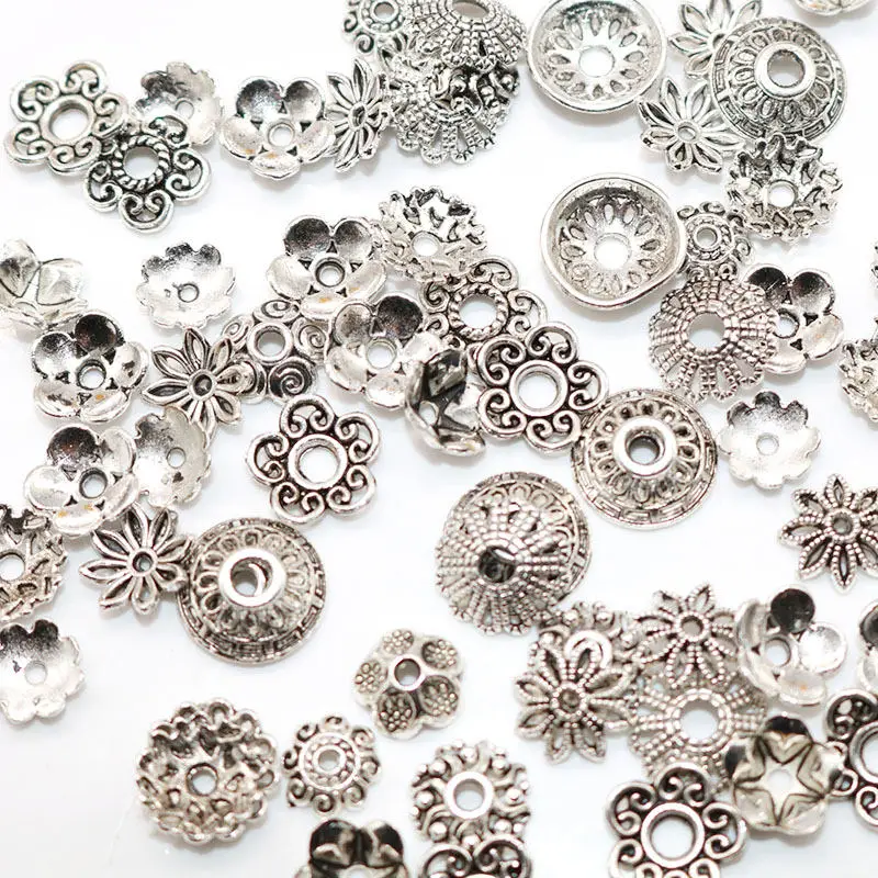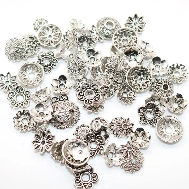 50-100 шт. сплав смешанного размера Тибетский посеребренный цветок золотые бусины торцевые колпачки металлические бусины колпачки шармы для ювелирных изделий