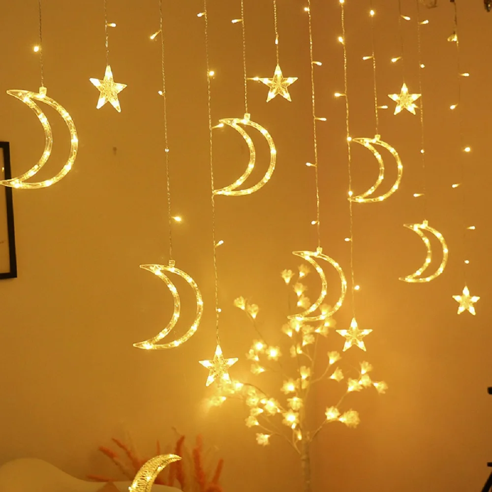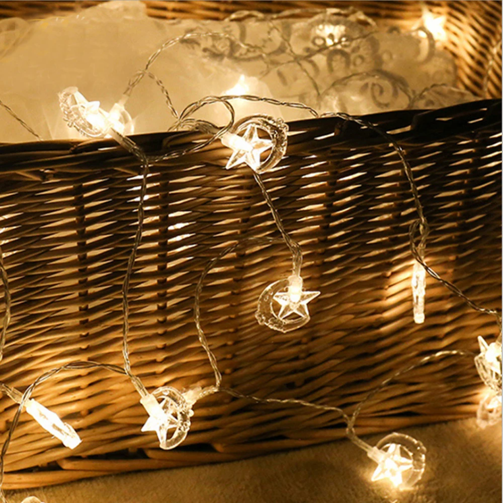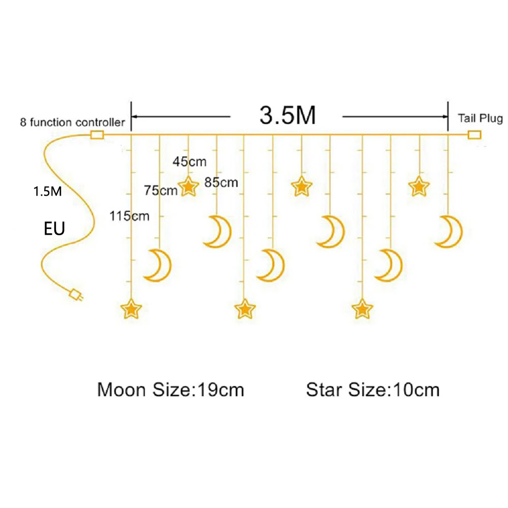 Светодиодный Сказочный светильник для занавесок с Луной, звездой, пентаграммой, гирлянда, светильник для рождественских праздников, свадебных декораций, штепсельная вилка EU/USB