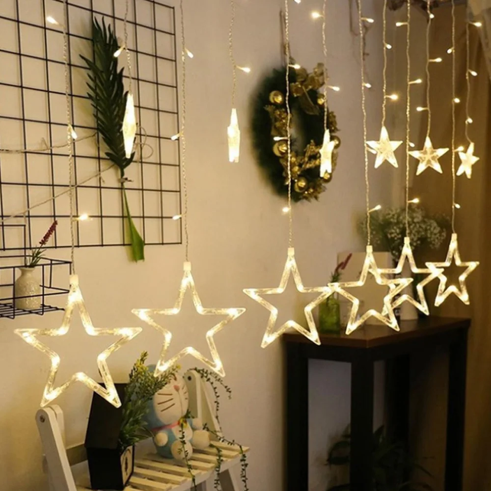 СВЕТОДИОДНАЯ Гирлянда-занавес в виде Луны, звезды, пентаграммы