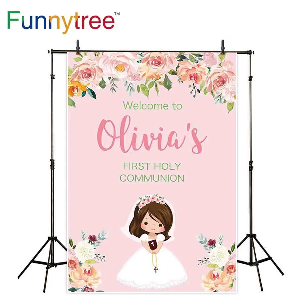 Фон Funnytree для фотосъемки с изображением цветов, розовая девушка, украшения для первого причастия