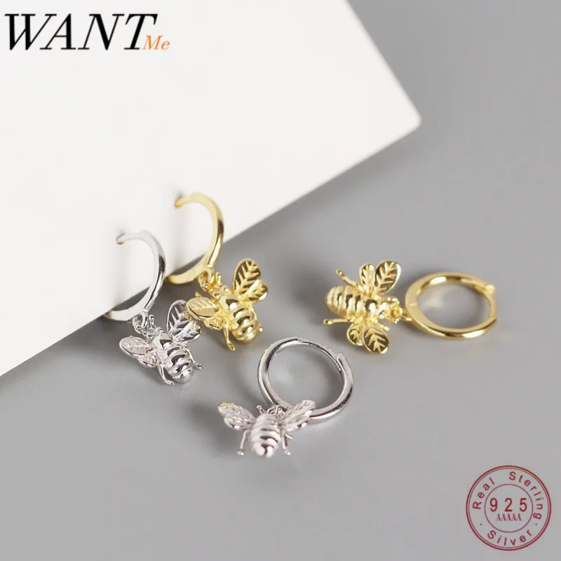 Женские богемные серьги WANTME, серьги из настоящего серебра 100% пробы с насекомыми в стиле панк и гвоздики пчелка, аксессуары в богемном стиле