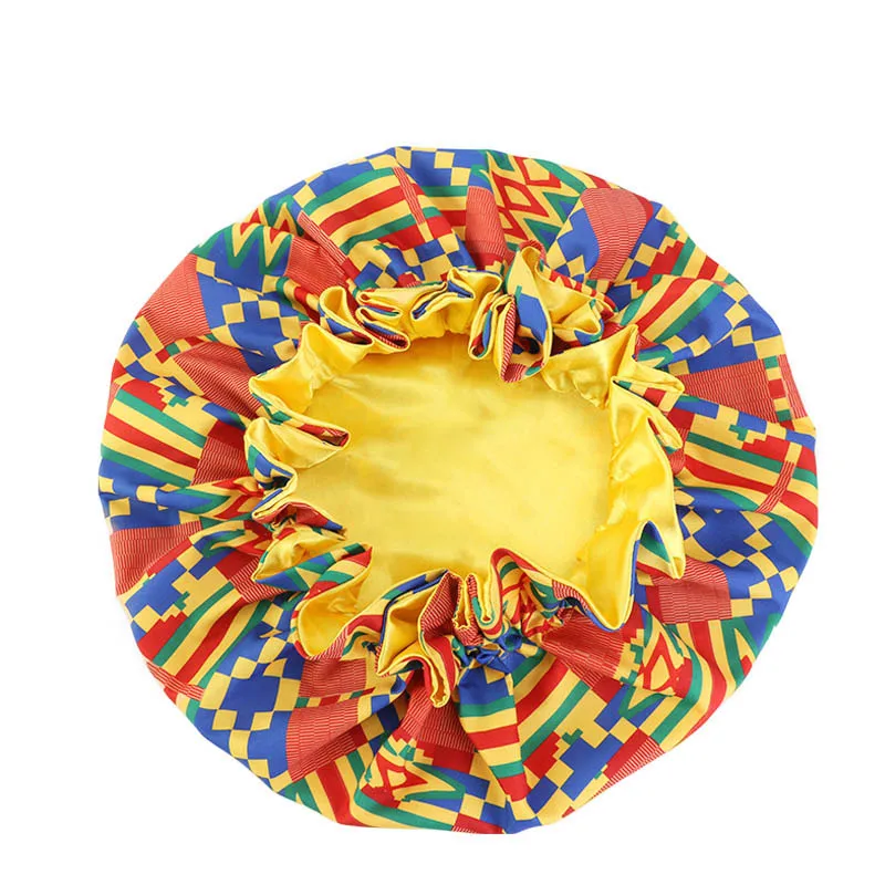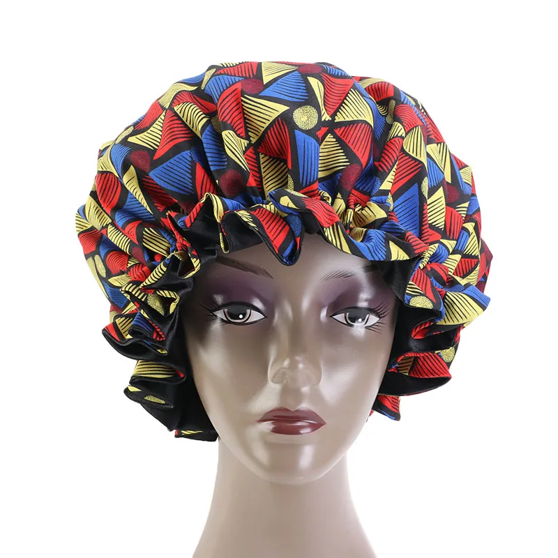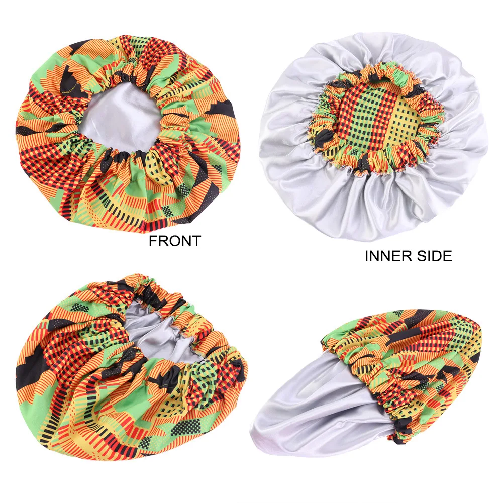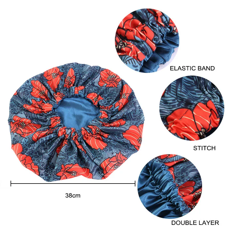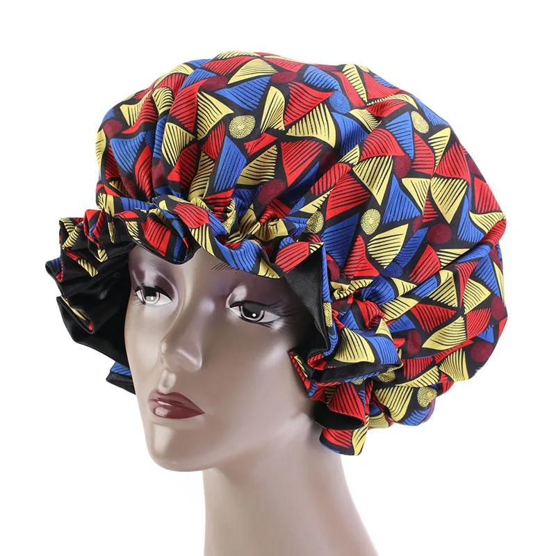Новая шапочка с Африканским принтом, женская шапочка для дневного и ночного сна, двухслойная Атласная шапочка-тюрбан, очень большая головная повязка, женская шапка с запахом на голову