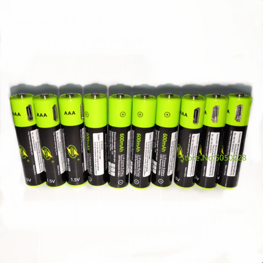 10 шт.лот ZNTER 1,5 в AAA перезаряжаемая батарея 600 мАч USB перезаряжаемая литий-полимерная батарея Быстрая зарядка через кабель Micro USB