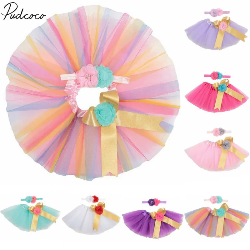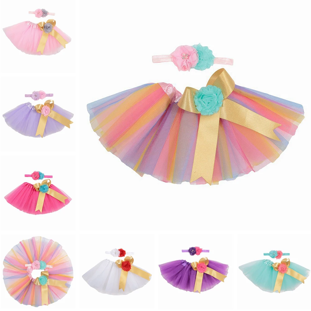 Красочная Радужная юбка-пачка для новорожденных малышей + повязка на голову с цветами реквизит для фотографирования
