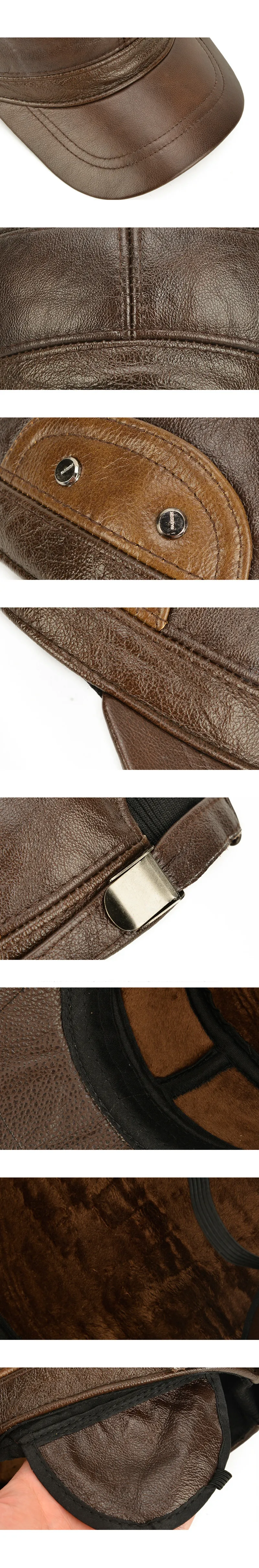SILOQIN шапка из натуральной кожи зимние теплые наушники береты муж...