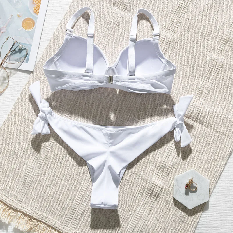Купальник женский Mossha, белый купальный костюм с высоким вырезом, 2020, бандажный купальник, стразы, блестящее бикини комплект