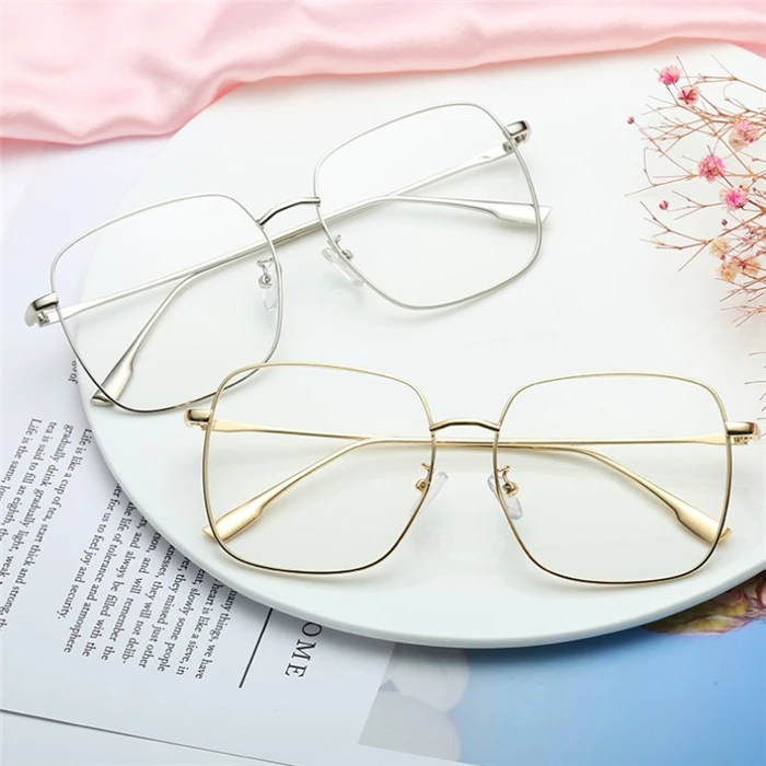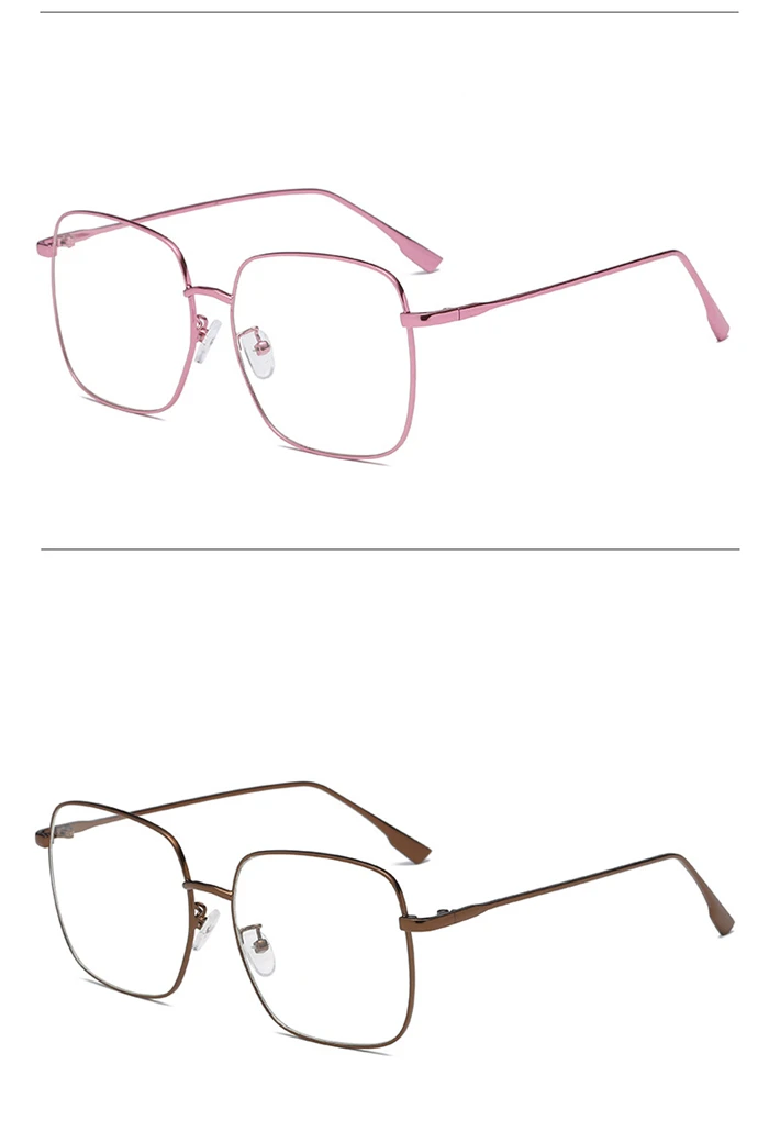 Очки женские с диоптрийными линзами, металлическая розовая оправа, от 0 до-Квадратная Большая рама до-0,5 по рецепту, для близорукости, 0,75