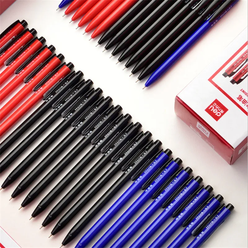 Deli Шариковая ручка для масла, 3 шт., черная, красная, синяя масляная Ручка push-on 0,7 мм, шариковая ручка для подписи для студента S310