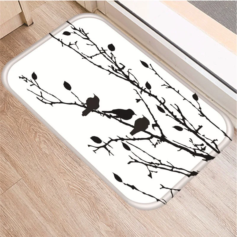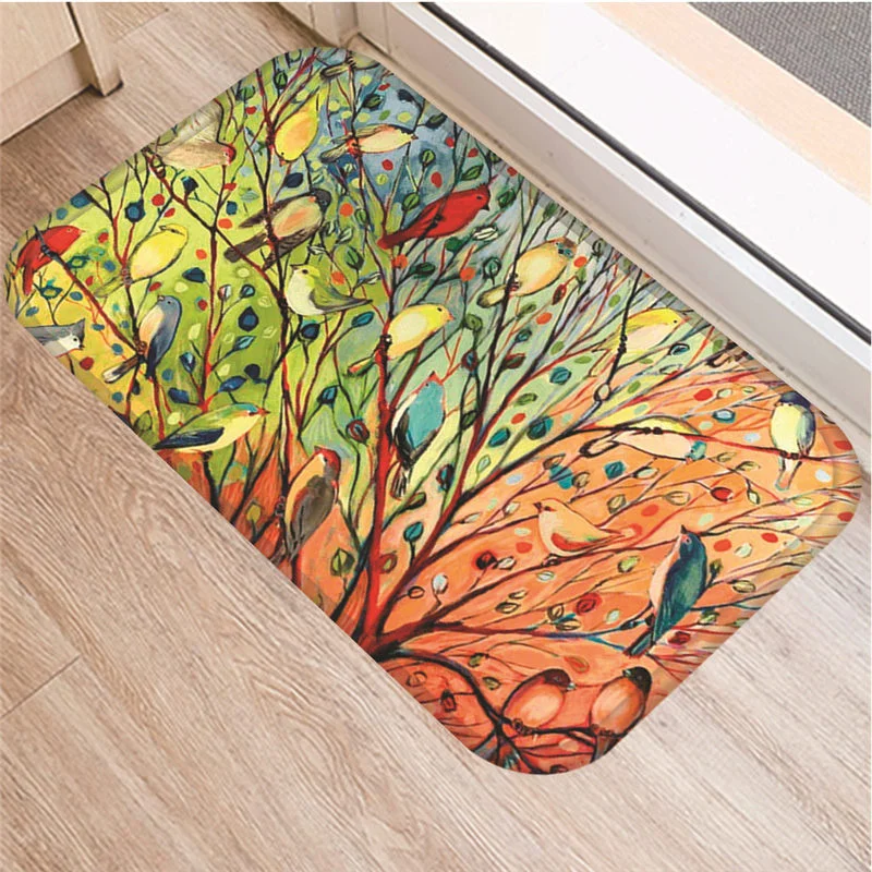 Коврик замшевый противоскользящий, с рисунком деревьев, цветов, птиц, 1 шт., 40 х60 см, Придверный коврик, для кухни, гостиной, 48299