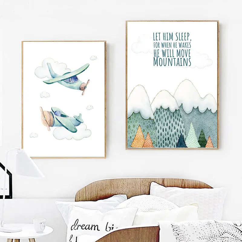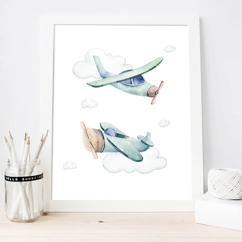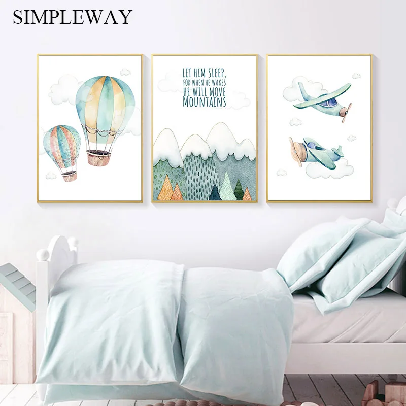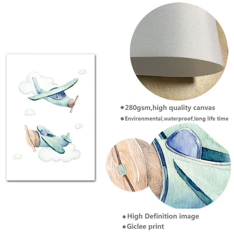 Детская фотография искусства акварели самолета воздушного шара холст картина на стену декор в скандинавском стиле для детской спальни мальчика