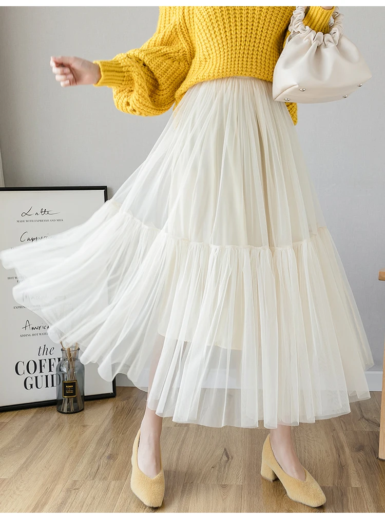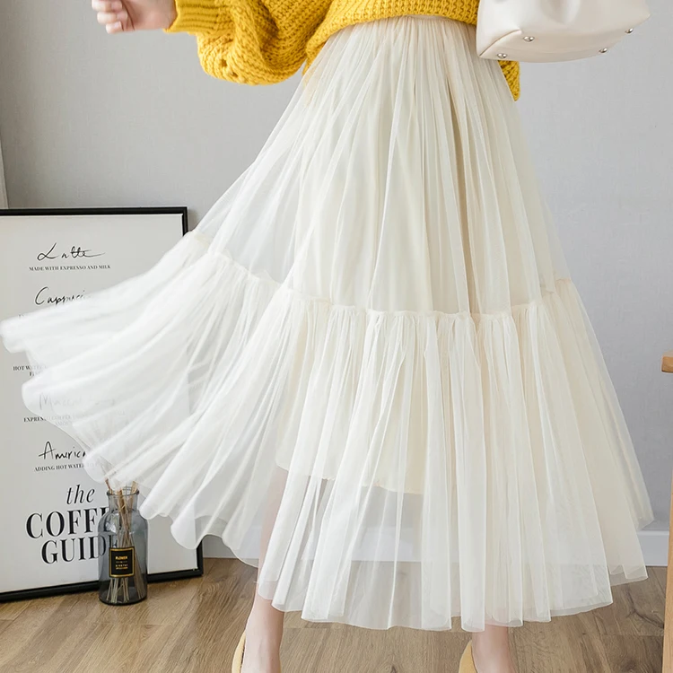 2020 Тюлевая бальная юбка принцессы пышная Женская юбка лолита белая сетчатая юбка для балета винтажная Женская юбка