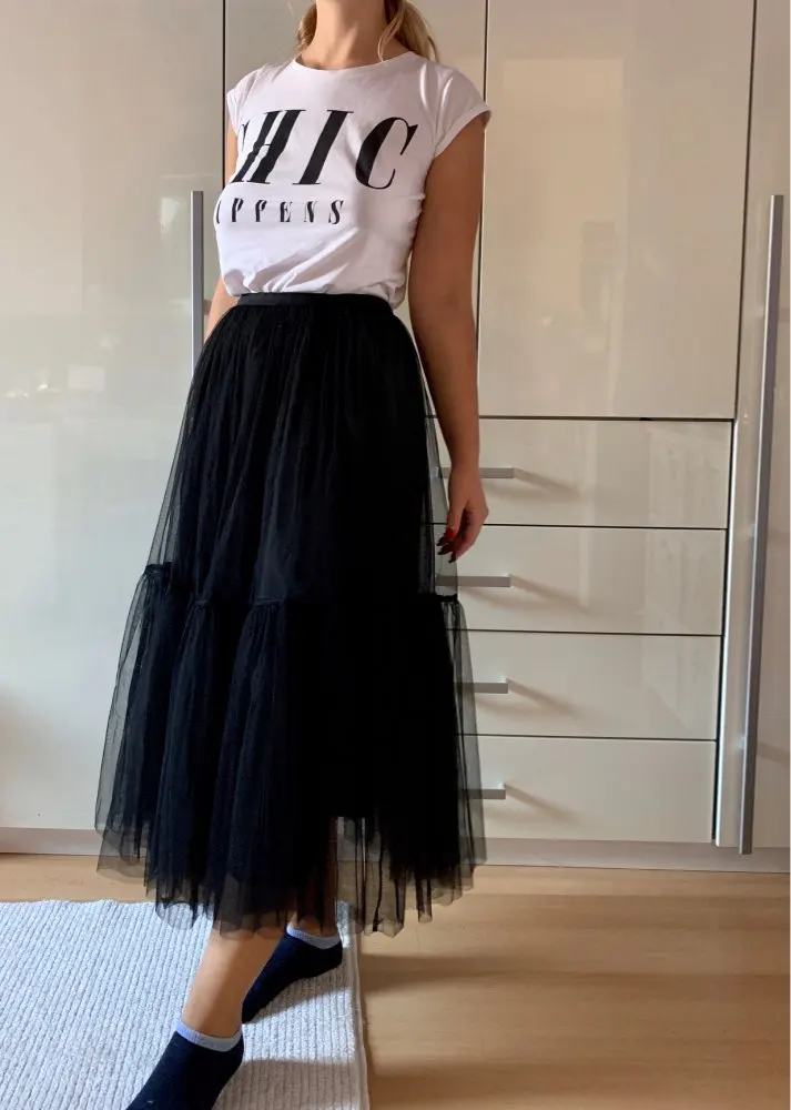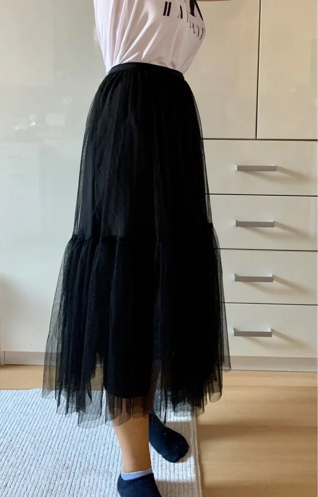 хорошая юбка, однослойный фатин +подклад, цвет серый, как и ожидалось, длинна мили, на рост 178, резинка туговата немного на русский 50размер