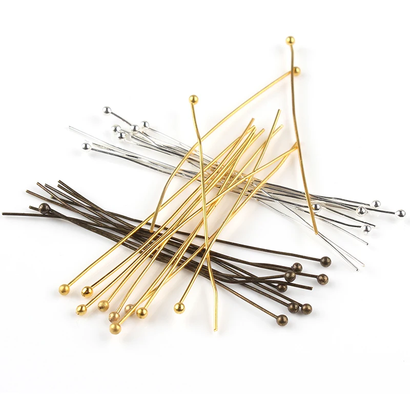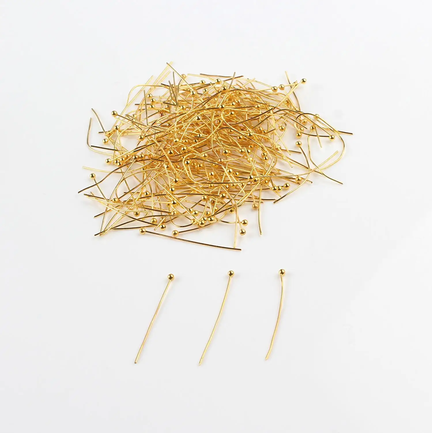 Металлические штифты с шариками золотистого цвета, 200 шт.лот, 20304050 мм, иглы, штифты для самостоятельного изготовления ювелирных аксессуаров