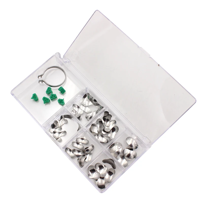 Высокое качество 100 шт. полный комплект Стоматологическая матрица секционные Контурные металлические матрицы + силиконовый добавить, на танкетке, с утеплителем для стоматологической лаборатории, стоматологов инструменты