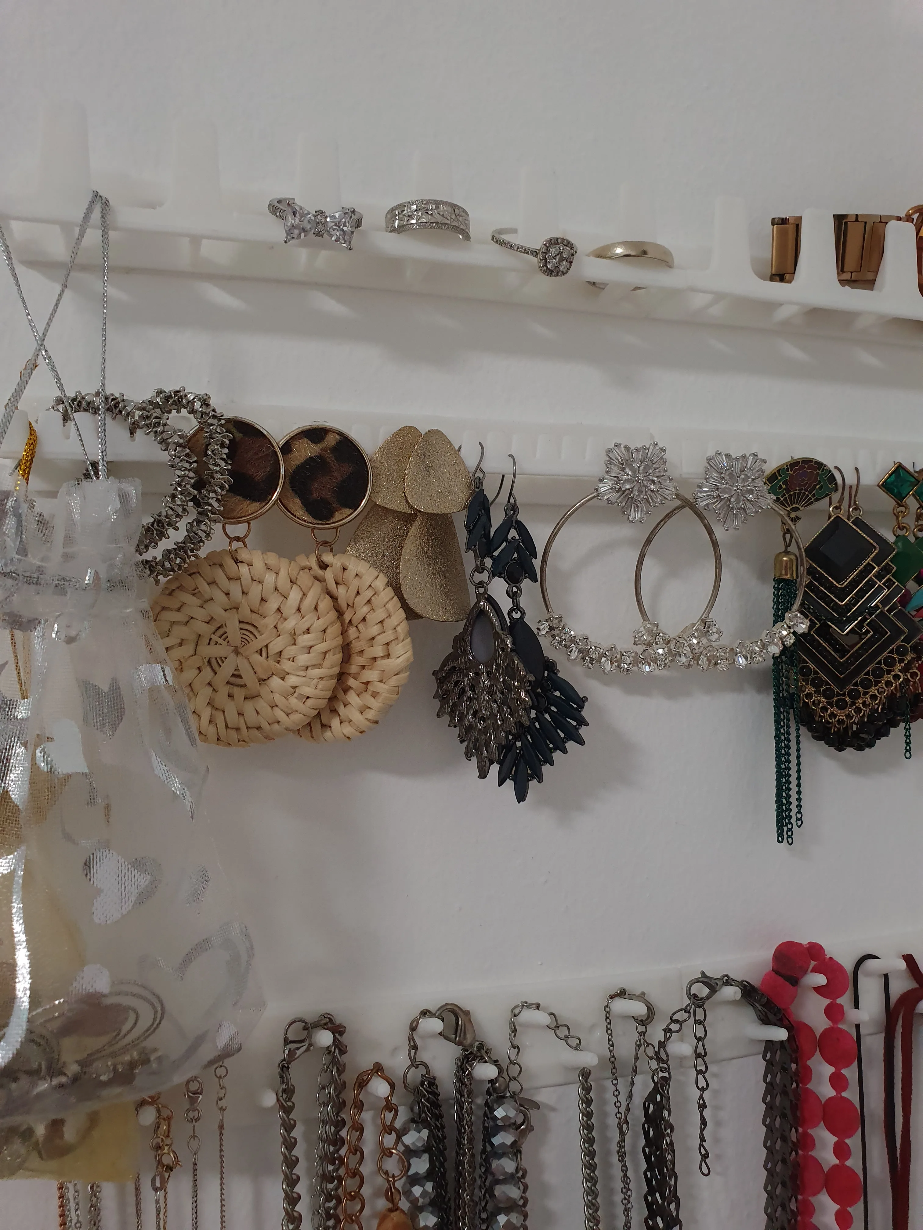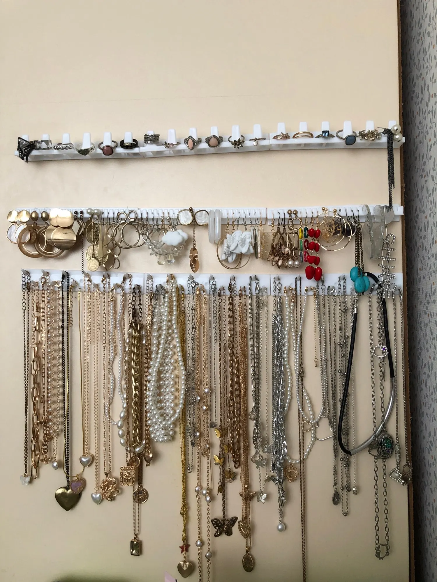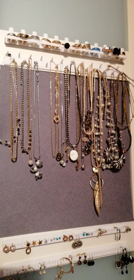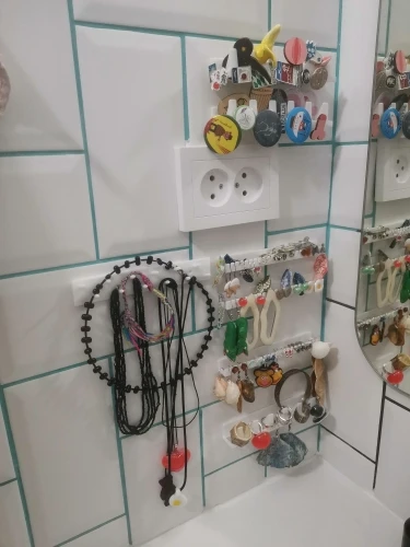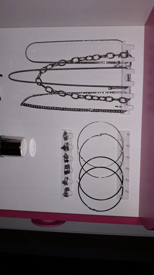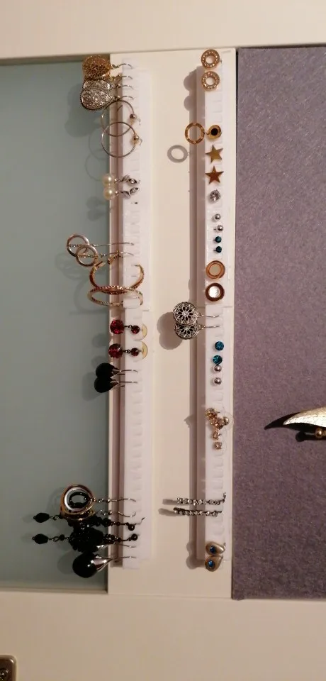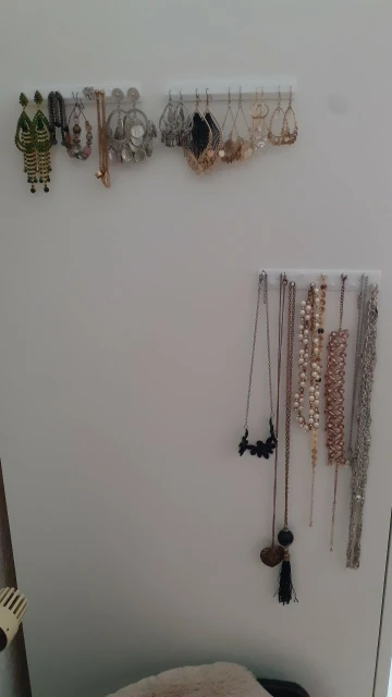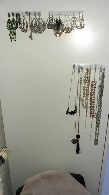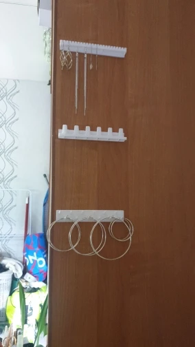 Классный органайзер. Хорошее крепление на двусторонней ленте. Крепко держится. Удобно. Все цепочки/сережки на виду, не надо ковыряться в шкатулке. Повесила на внутреннюю дверцу платяного шкафа, чтобы не пылились.