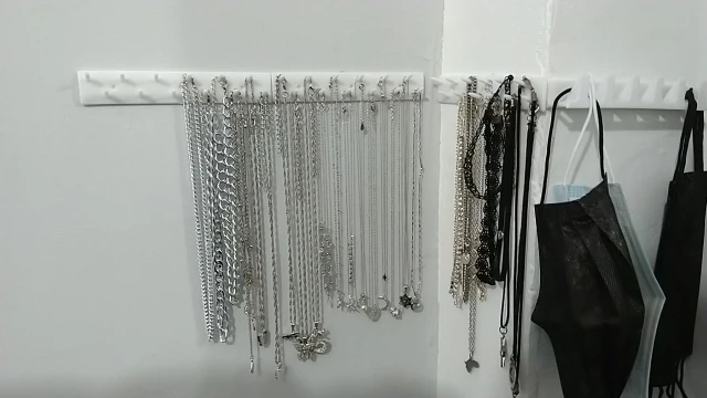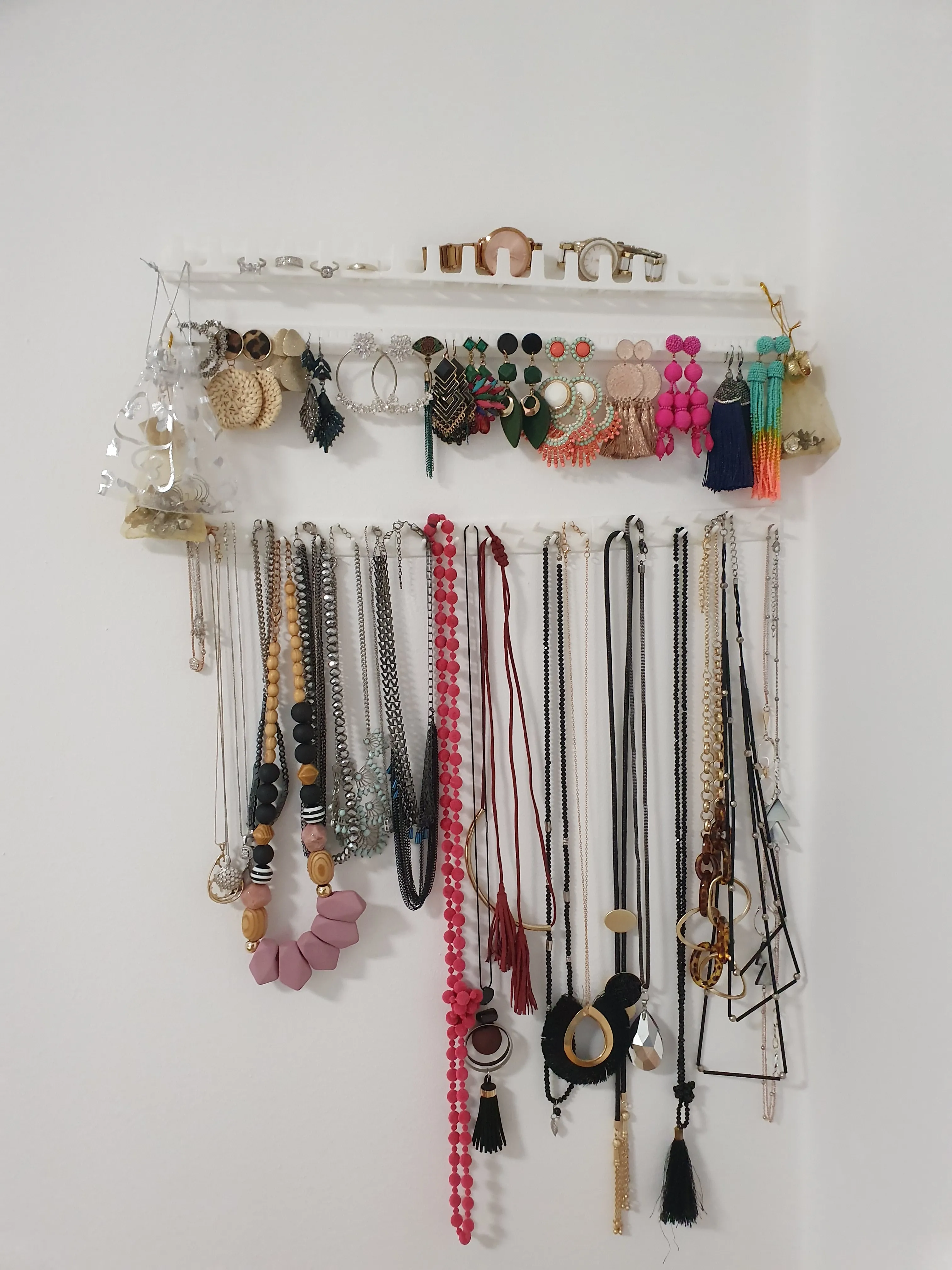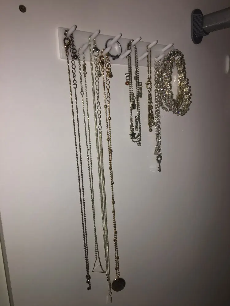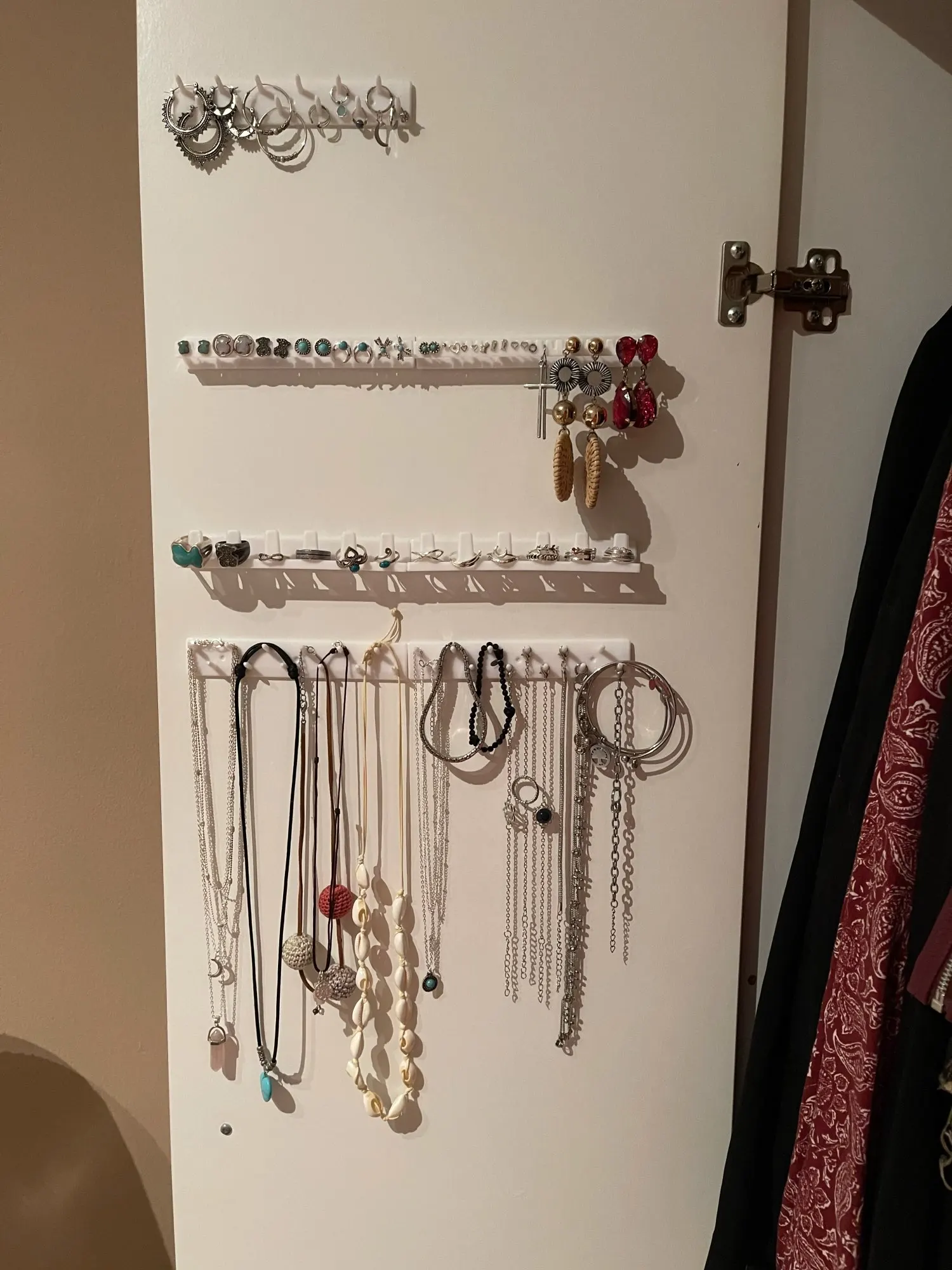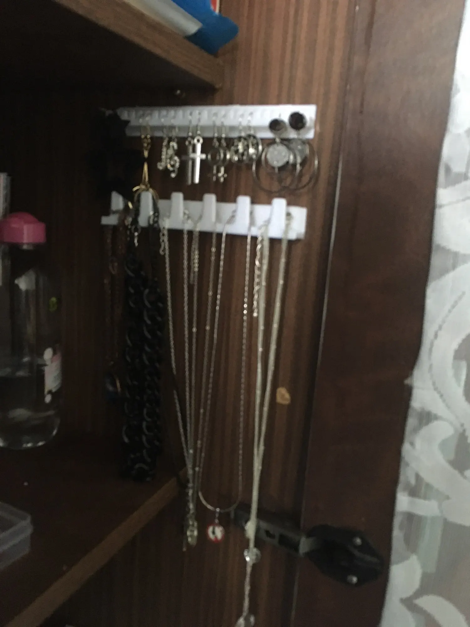 Классный органайзер. Хорошее крепление на двусторонней ленте. Крепко держится. Удобно. Все цепочки/сережки на виду, не надо ковыряться в шкатулке. Повесила на внутреннюю дверцу платяного шкафа, чтобы не пылились.