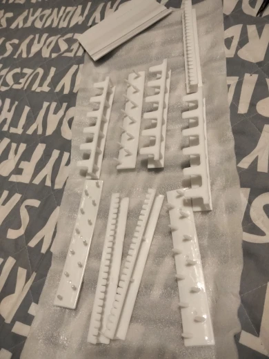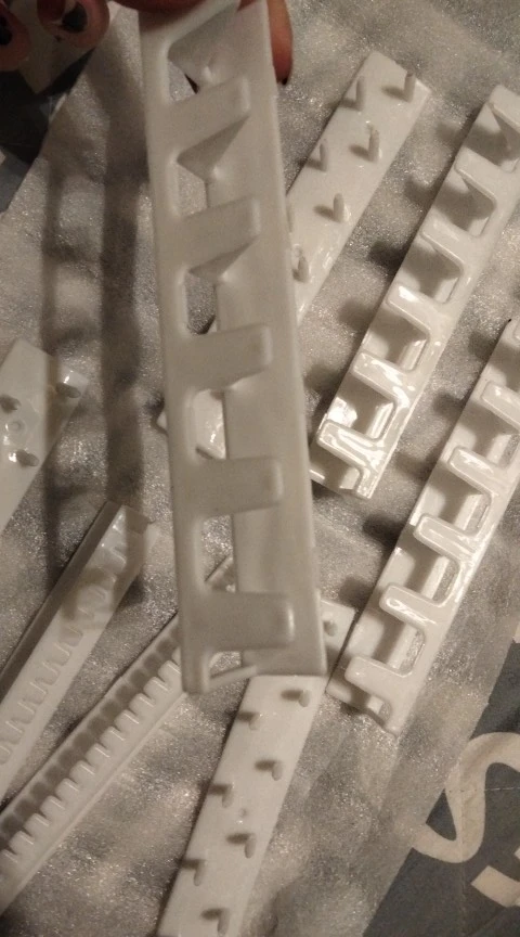 Они сделаны из гибкого пластика, и я надеюсь, что это длится Все, что я хочу поставить. Они разделены на две части Кусочки. Спасибо, продавец.☺