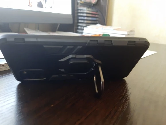 Элегантный дизайн, кольцо работает хорошо. Он предлагает безопасность для камеры, но находится прямо на том же уровне экрана спереди.