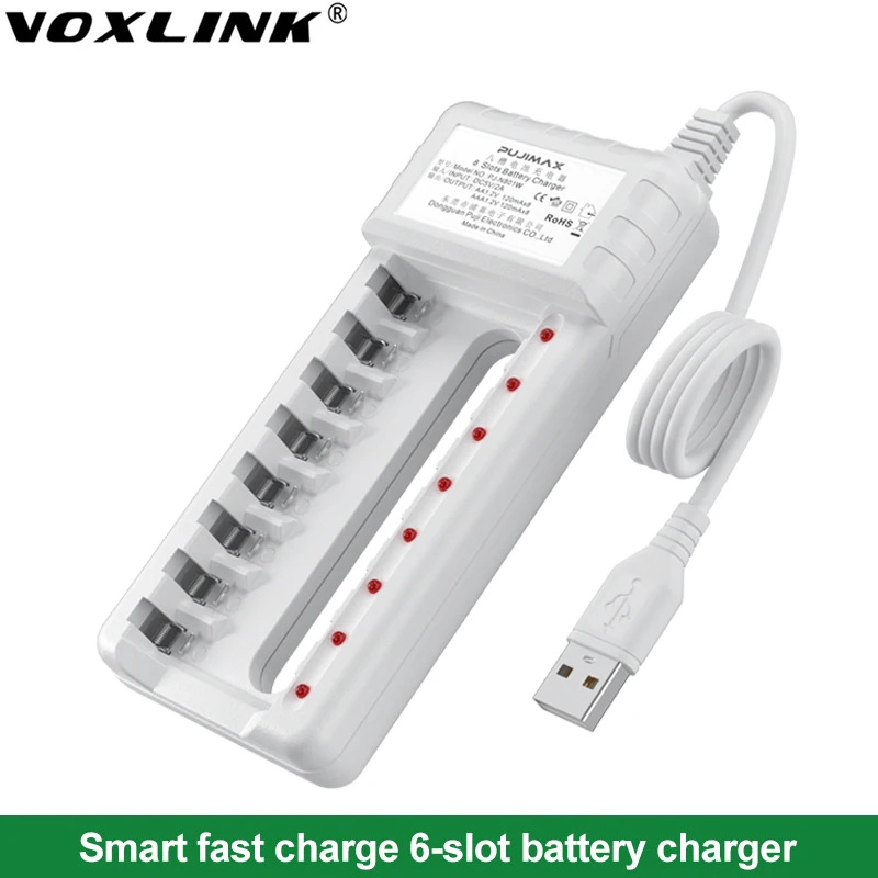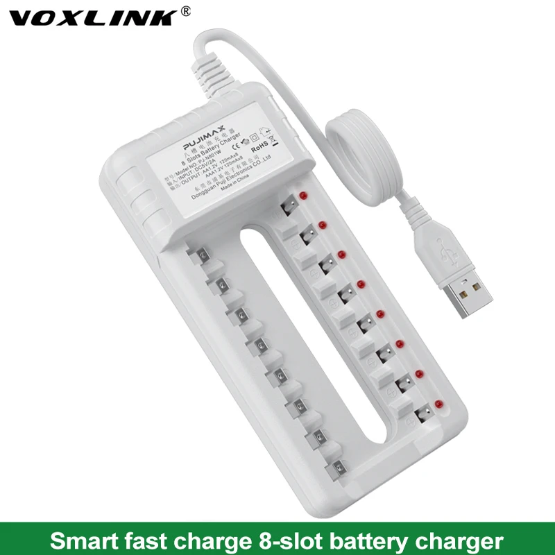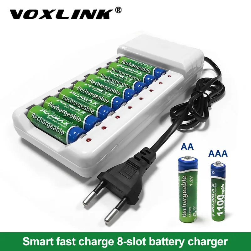 Зарядное устройство Voxlink, c умным процессом зарядки, для европейских розеток, на 8 батарей AAAAA, NiCd, с ЖК-дисплеем, с защитой от короткого замыкания, для устройств дистанционного управления, микрофонов, камер