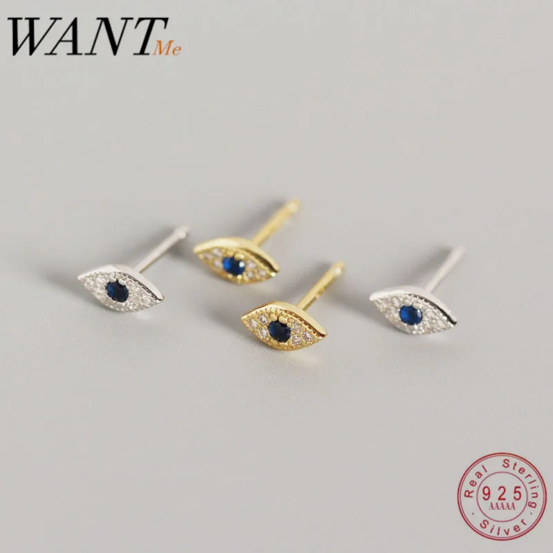 Женские серьги-гвоздики WANTME из серебра 100% пробы с голубым цирконием и глазами демона, модные бигемские серьги от сглаза, подарочные украшения