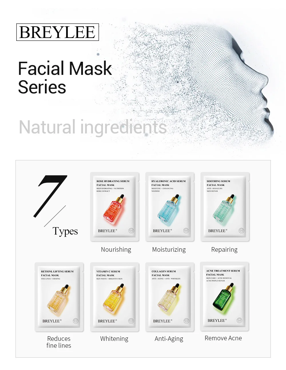 BREYLEE Витамин С коллагеновая ретинол маска для лица Сыворотка для лица листовая маска лечение от прыщей, отбеливание увлажняющий крем против старения уход за кожей