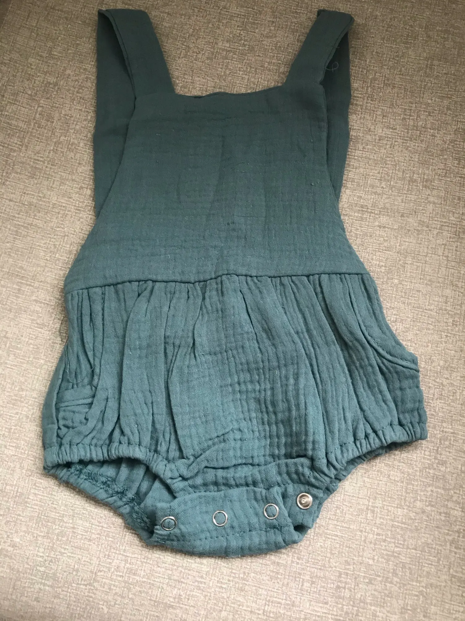 Ромпер отличного качества, дышащий муслин, на лето самое то. Маломерит. На 9 мес заказала 24 размер-в самый раз. Цвет как на картинке.
