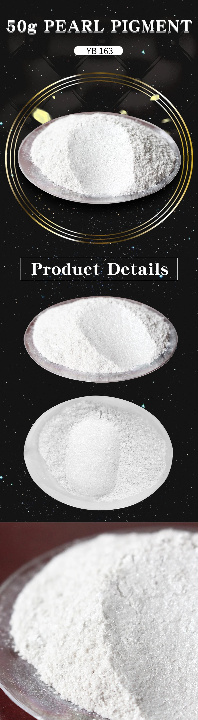 Применение:Краска и покрытие, чернила, пластик, кожа, печать, бумага, строительные материалы, украшения, металл, деревянная мебель, керамика, роспись стен, ручная роспись DIY, граффити, перламутровая краска, велосипедная краска, железная краска, ремонтная жемчужная кожа, игрушечная краска, Модифицированная Автомобильная живопись, ремесла, косметика, Тени для век, блеск для губ, лак для ногтей.