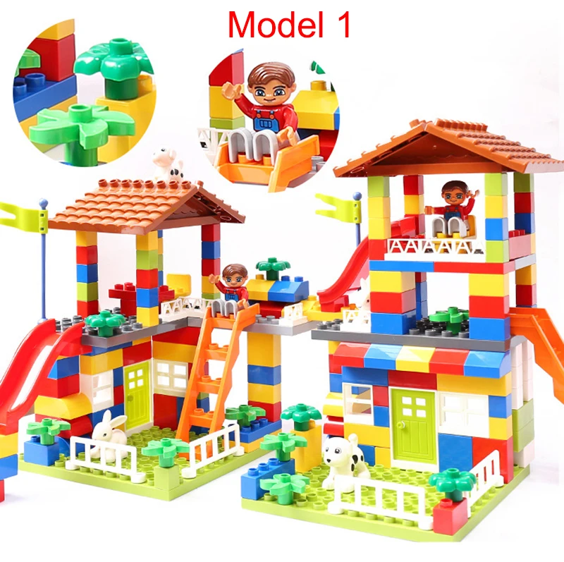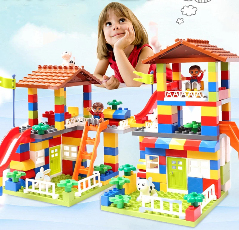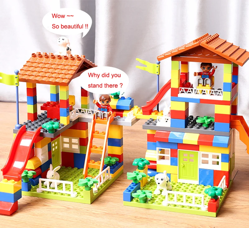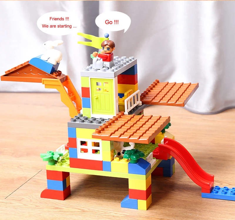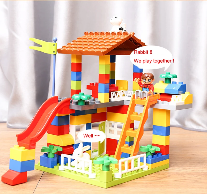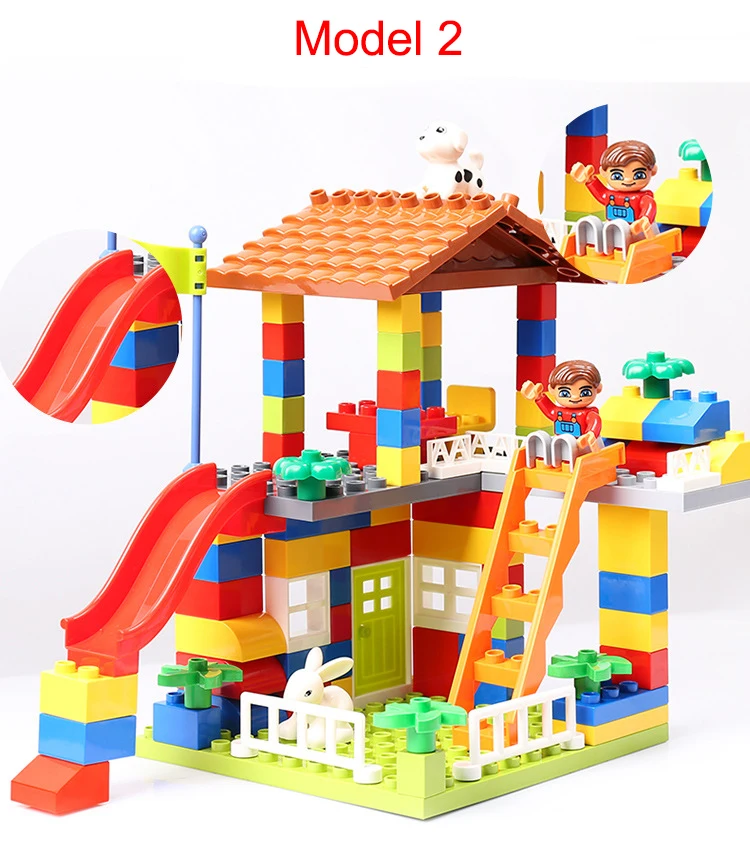 Большой Размеры слайд блоки маленького размера идущие город красочный игровой домик крыша большие частицы DIY строительные блоки замок кирпичные игрушки для Детский подарок