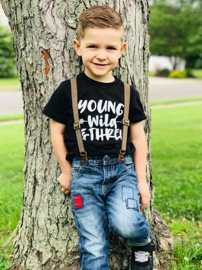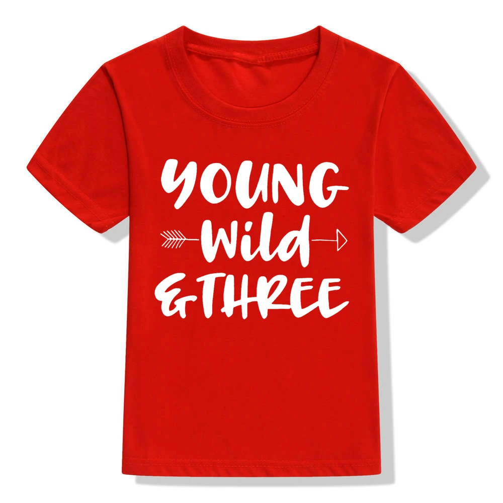 Футболка с короткими рукавами для мальчиков и девочек Young Wild and Three, Детская футболка на день рождения, вечерние футболки для малышей