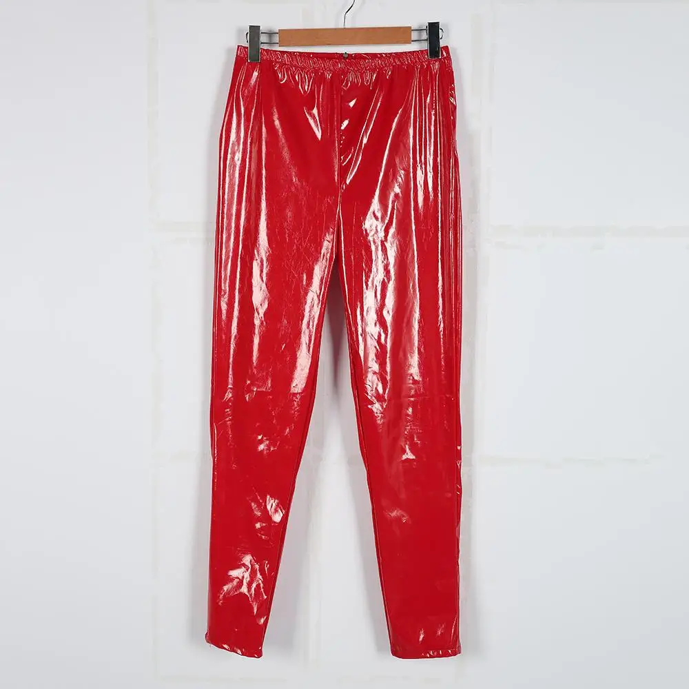 Из Pu искусственной лакированной кожи, красные леггинсы с высокой т...