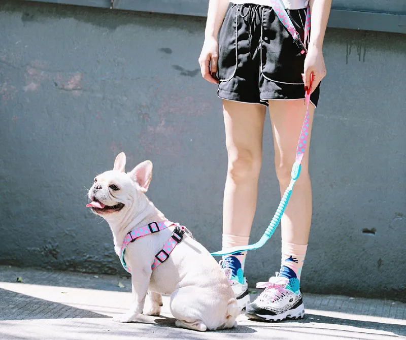 Комплект шлейка и поводок для собак, дизайнерский Стильный Выдвижной Поводок розового цвета для бега, прогулок