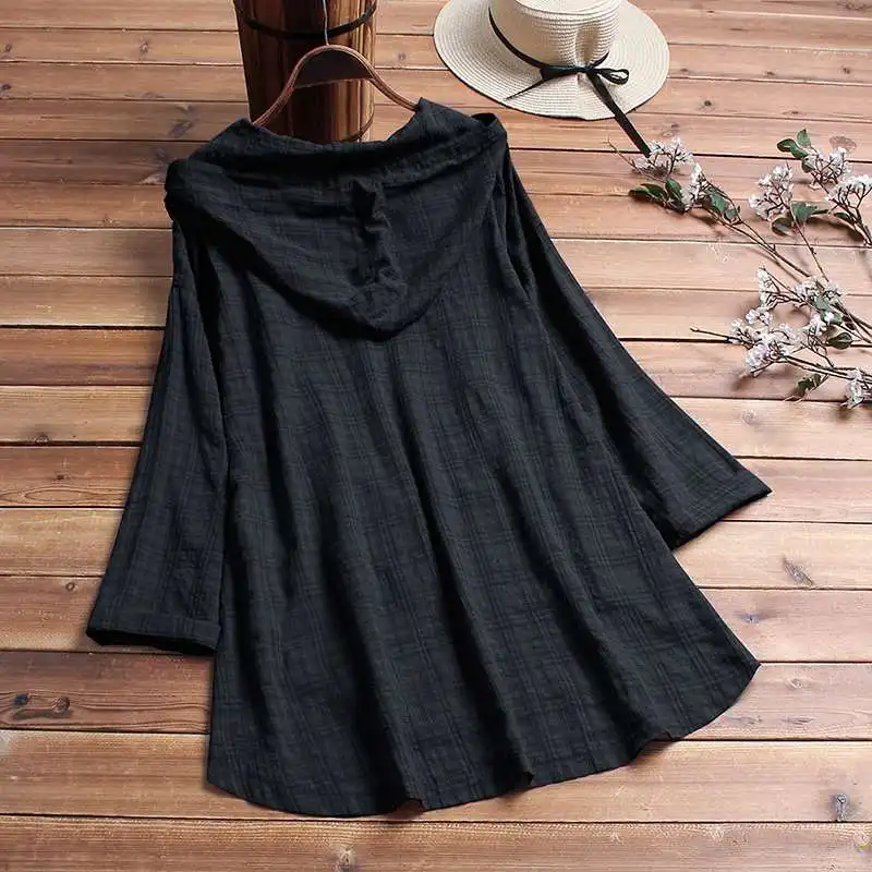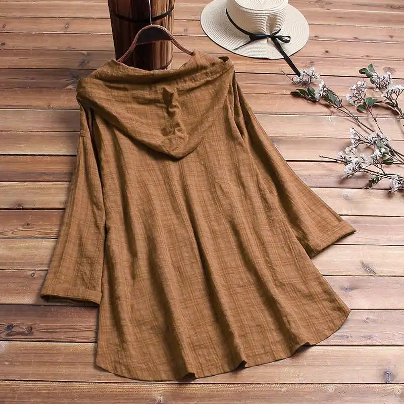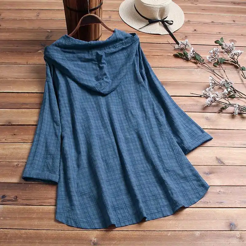 Хлопковая рубашка-туника, в клетку, с длинным рукавом, для осени, женская блузка ZANZEA, 2021