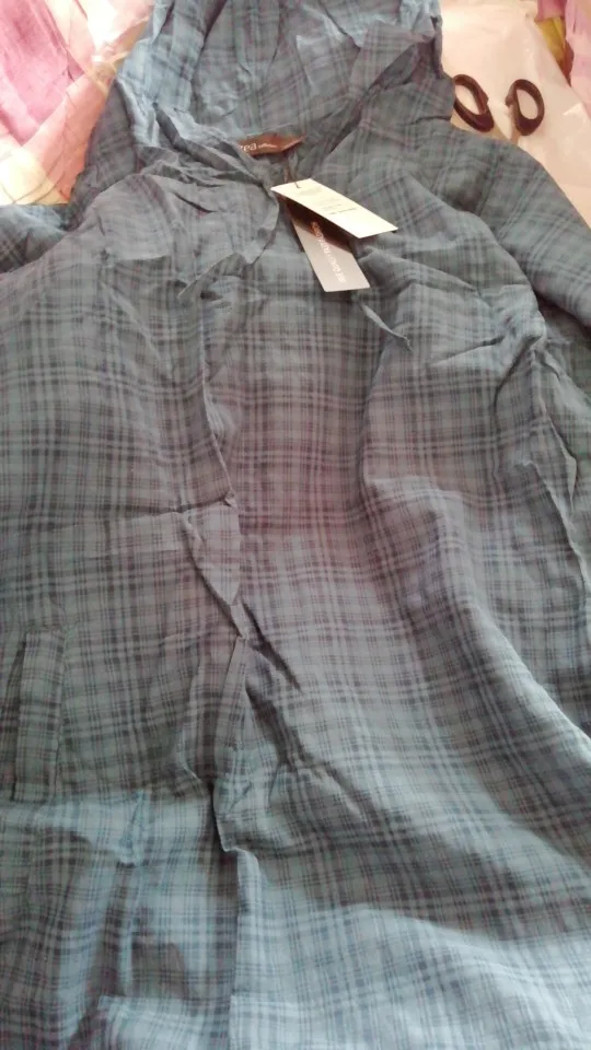 Очень приятная тонкая, лёгкая блузка. не 52р взяла 5XL Можно поменьше, но мне понравилась свобода. Фактически она темно-синяя в чуть заметную клетку