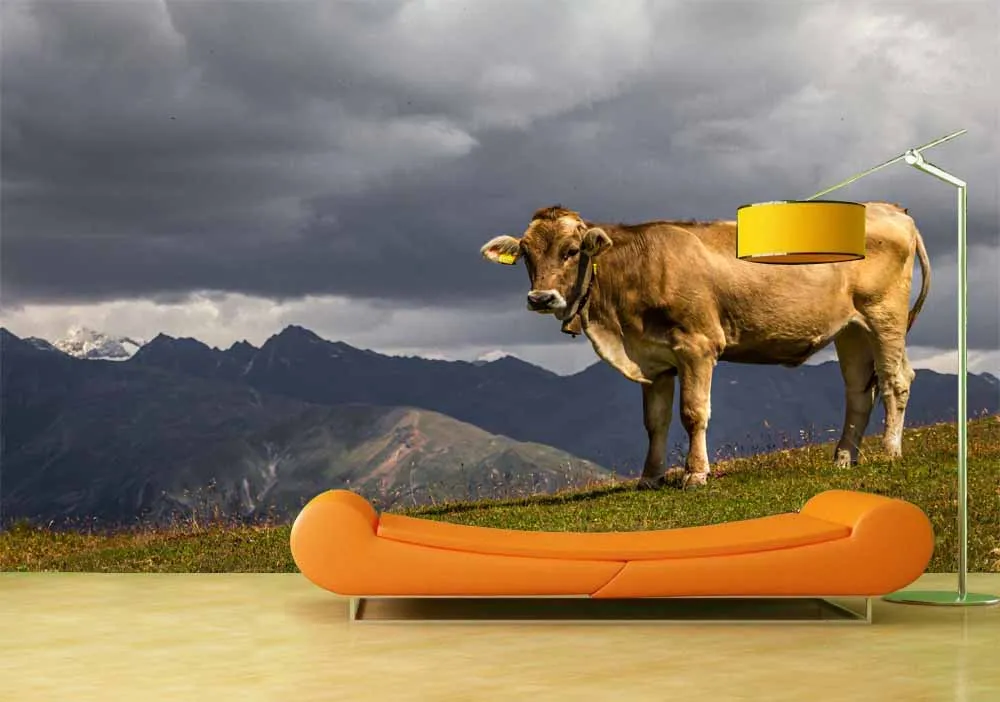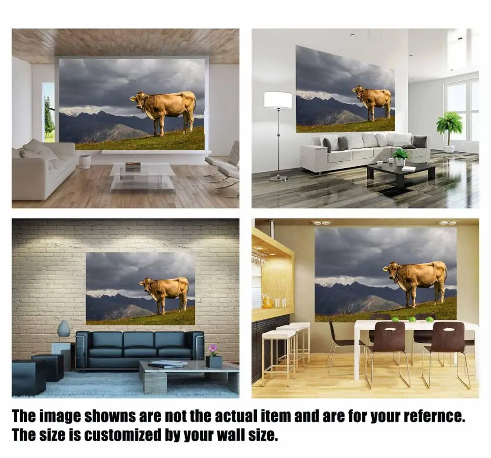 Пользовательские 3D фото обои стикеры Гора корова Настенная Наклейка с животными Виниловые Настенные стикеры s украшения стены гостиной плакат росписи