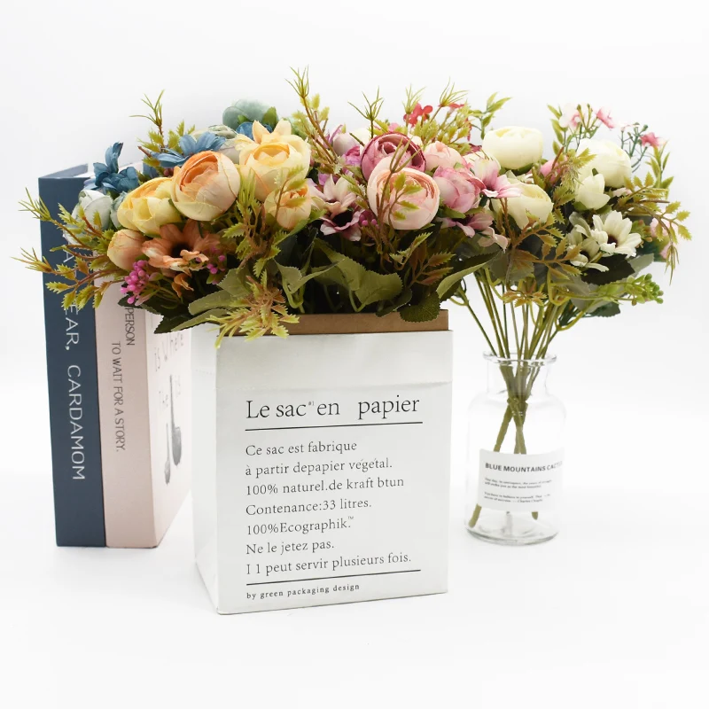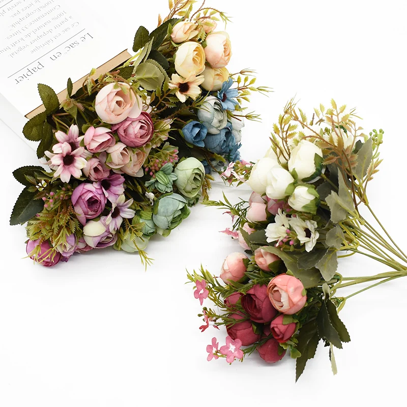 Разноцветные Чайные розы, вазы для украшения дома, искусственные ромашки, пластиковые растения, Свадебные Декоративные искусственные цветы, дешево