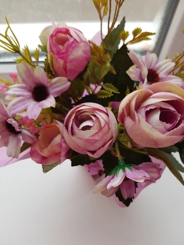 Цветы красивые. Пришли помятые, отпарила над кипящей водой. Заказывала три букетика, все разного цвета. У продавца какая-то интересная система : если выбираешь букет одного цвета в количестве два и больше штук, появляется платная доставка и с каждым букетиком нехило увеличивается. А если выбираешь разные цвета по одному букетику каждый, доставка бесплатная. Где логика? Может быть чтобы не было залежей букетиков одного цвета, чтобы разбирали равномерно) .