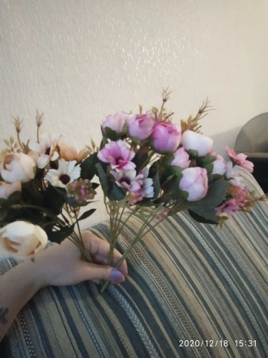 Эти прелестные чайные розы являются шедевром - они настолько искусно изготовлены, что их совершенно не отличить от живых. Все, кто их видел, восхищался их красотой и сразу инстинктивно подносил их к носу, чтобы ощутить их аромат, и в этот момент я поняла, что для полного счастья нужно добавить капельку парфюма. После того, как я подушила цветы моими любимыми Chanel Chance Eau Fraiche, цветы стали благоухать французским ароматом и гармония стала абсолютной. Доставка 34 дня (25 декабря 2020 - 28 января 2021) ⭐⭐⭐⭐⭐