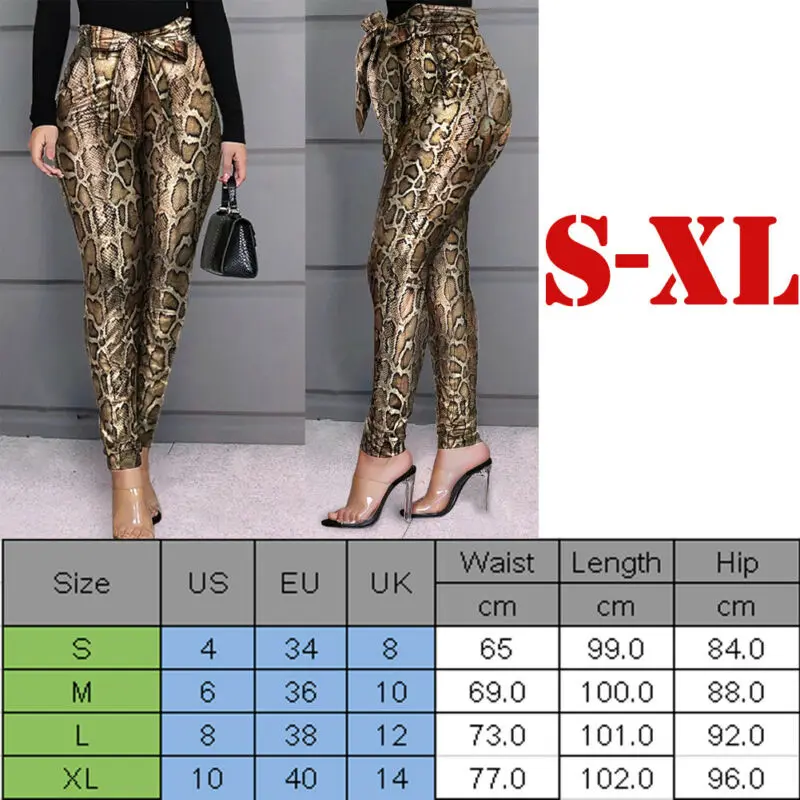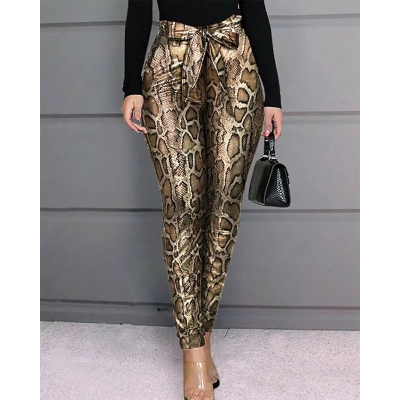 Женские брюки с леопардовым принтом и бантом, эластичные облегающие брюки-карандаш из искусственной кожи, обтягивающие длинные бандажные брюки с высокой талией, осень 2020