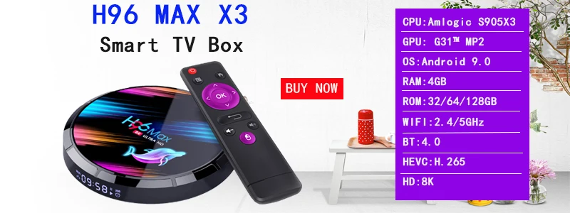 -CPU: четырехъядерный процессор Amlogic S905X3 ARM Cortex A55;-GPU: ARM Mali-G31MP;-ОС: Android 9,0;-Память: DDR3 4 Гб, флэш-память 32 ГБ/64 Гб/128 Гб;-Поддержка H.265, 8K @ 24fps, 4K @ 60fps, HD 2,1, USB3.0;-Поддержка: Gigabit Ethernet, 2,4 & 5G Dual Wifi + AC;-Поддержка: Youtube HD 4K;-Поддержка беспроводного обновления (OTA).